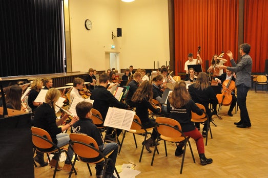 Eén van de vele leuke dingen van het Stedelijk Gymnasium Arnhem is het schoolorkest Euterpe! Het orkest bestaat nu uit ongeveer 20 leden en wordt gedirigeerd door Antoine Janssen. Alle leerlingen kunnen meedoen met Euterpe. De dirigent schrijft voor iedereen een passende partij! Zelfs als je nog geen instument bespeelt, bedenkt hij iets voor je. Alleen pianisten hebben we niet meer nodig. Van november tot april repeteren we elke dinsdag van 14.15 tot 15.45 uur in lokaal A0.